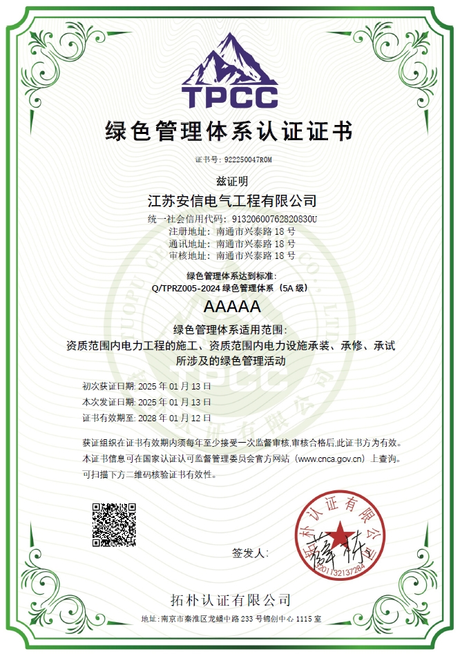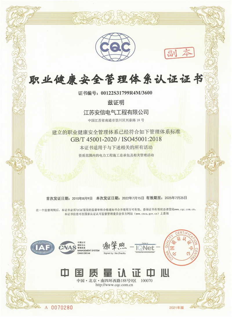 在創(chuàng)業(yè)之初,公司就堅(jiān)持高起點(diǎn)的戰(zhàn)略思路,廣納賢才,集聚行業(yè)精英,創(chuàng)新發(fā)展,做優(yōu)企業(yè)品牌。現(xiàn)已取得:承裝二級(jí)、承修二級(jí)、承試二級(jí),電力工程施工總承包二級(jí),輸變電工程專(zhuān)業(yè)承包二級(jí),建筑工程施工總承包二級(jí),建筑機(jī)電安裝專(zhuān)業(yè)承包二級(jí),地基基礎(chǔ)專(zhuān)業(yè)承包二級(jí)資質(zhì)證書(shū),并通過(guò)了質(zhì)量、環(huán)境、職業(yè)健康和安全管理體系認(rèn)證,確保各項(xiàng)工作有序管控。