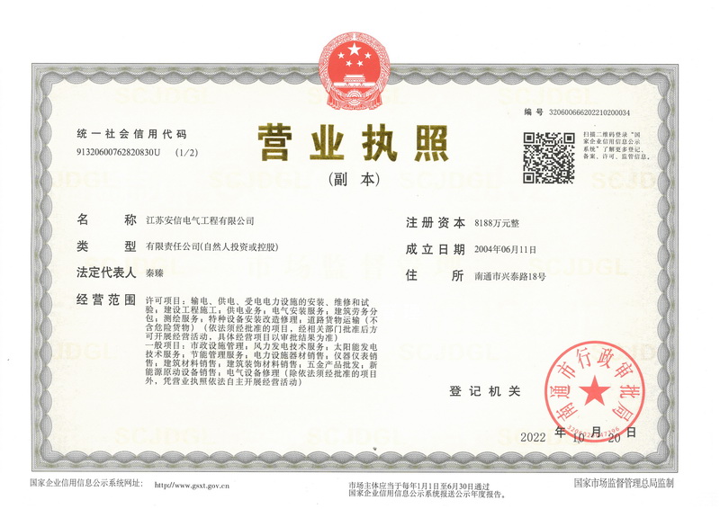 江蘇安信電氣工程有限公司,成立于2004年6月,注冊(cè)資金8188萬(wàn)元,占地22000平方米,位于南通市興泰路18號(hào),東接南通站、興東機(jī)場(chǎng),西鄰南通西站、滬蘇通公鐵長(zhǎng)江大橋,交通便捷。